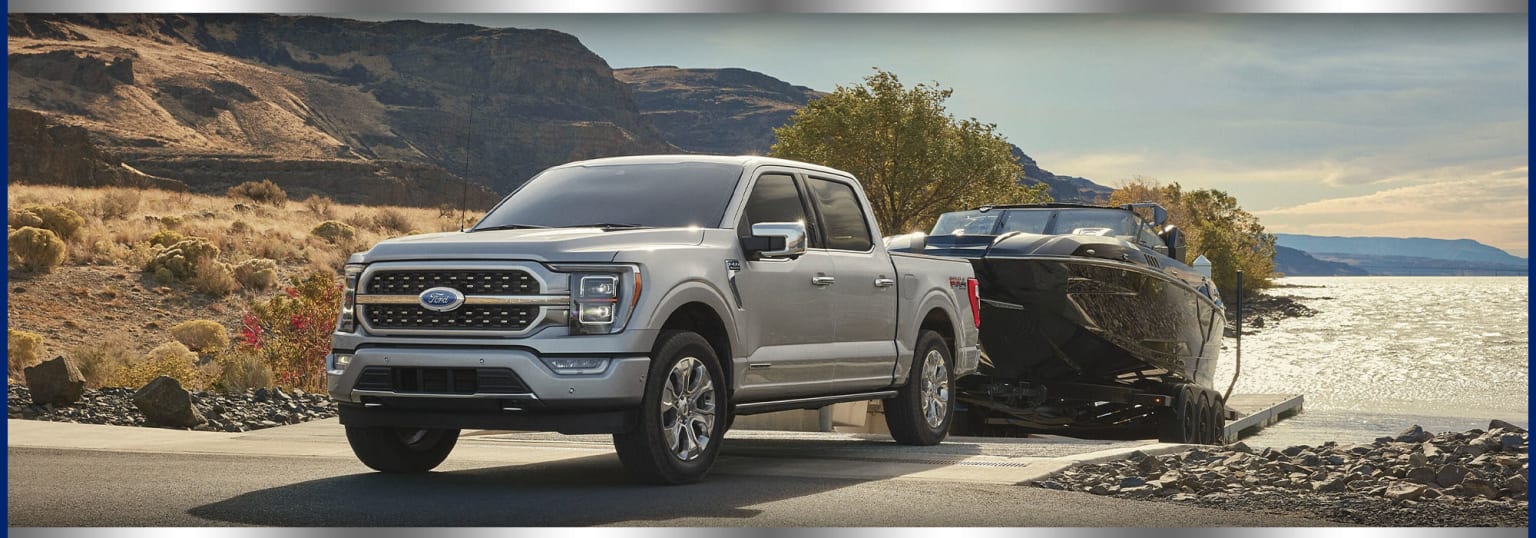 The 3.5L EcoBoost® V6 motor is the big dog on the lot and features the maximum Ford F-150 towing capacity of 14,000 lbs. with 400 horsepower and 500 lb.-ft. of torque and the available Max Trailer Tow Package.